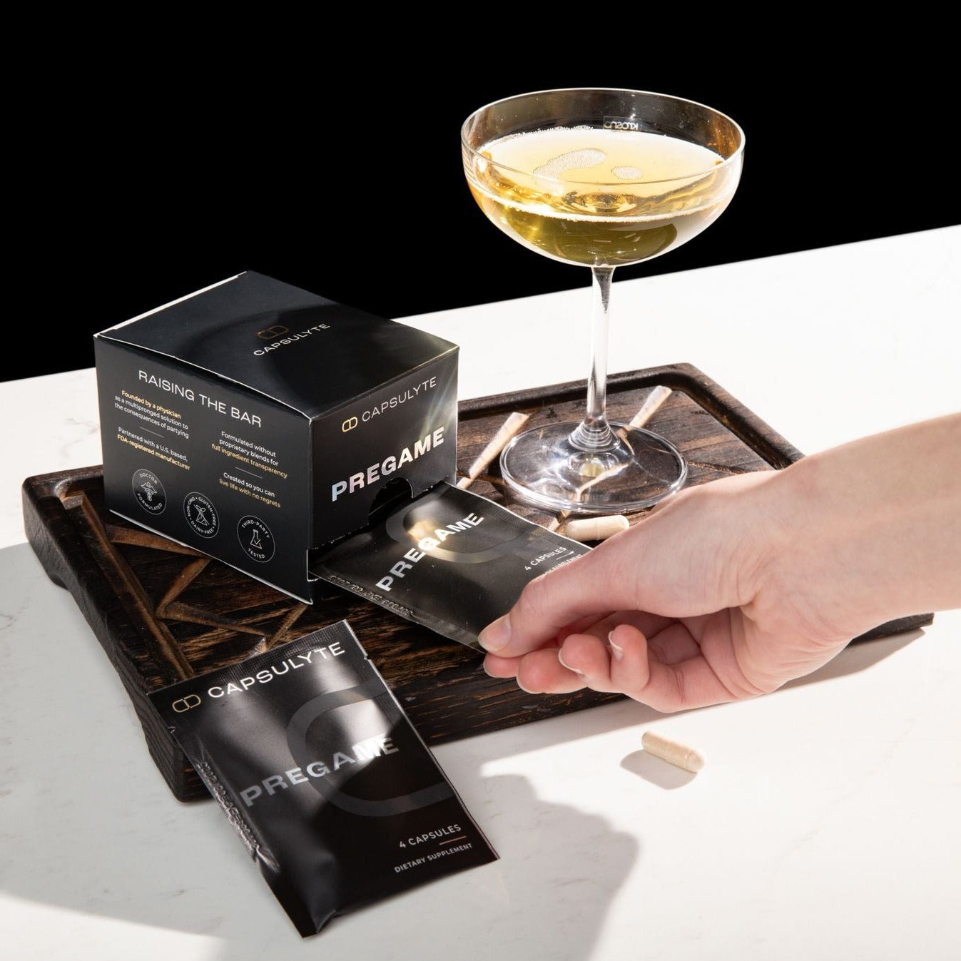 Consume 4 capsules (1 packet) any time after your first drink to 30 minutes after your last drink